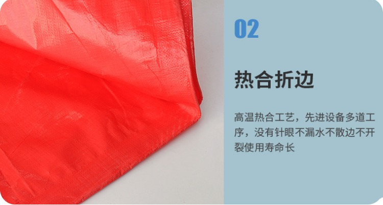 大紅色PE防水篷布熱合折邊:高溫?zé)岷瞎に嚕冗M(jìn)設(shè)備多道工序,沒(méi)有針眼不漏水、不散邊、不開(kāi)裂,使用壽命長(zhǎng)。