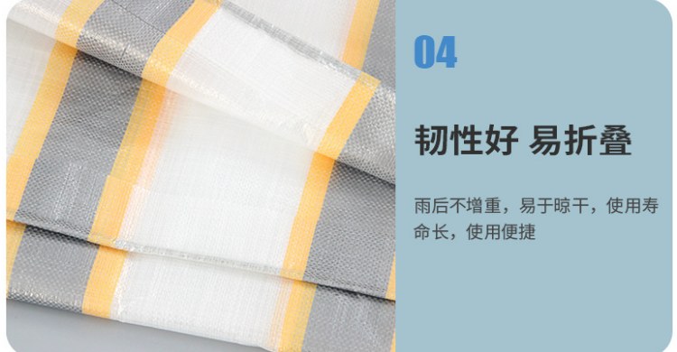金包銀色PE防水篷布韌性好 易折疊:雨后不增重,易于晾干,使用壽命長,使用便捷。