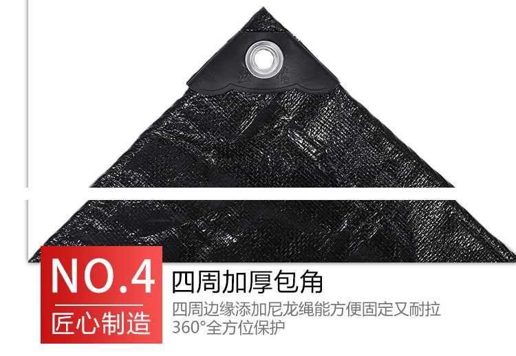 雙黑色PE防水篷布四周加厚包角:四周邊緣添加尼龍繩能方便固定,又耐拉,360度全方位保護。