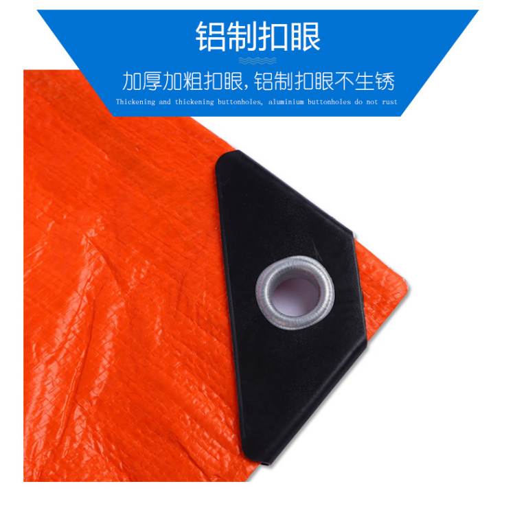 產品介紹雙桔色PE防水篷布產品規格參數雙桔色PE防水篷布精選材料,耐腐蝕,材質穩定,抗酸堿雙桔色PE防水篷布鋁制扣眼,加厚加粗扣眼,鋁···